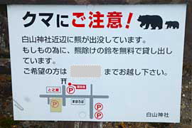 今年は熊の出没が全国的に多く、平泉寺白山神社近辺でも目撃があるようです。小心者と自覚している身としては困ったものです。